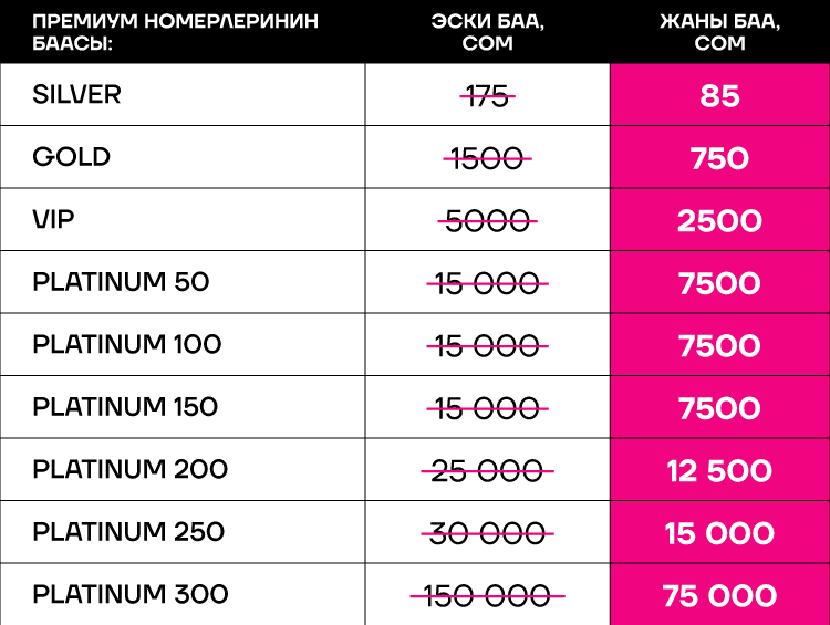 Кадимки баасынын жарымына PLATINUM номерине ээ болуу мүмкүнчүлүгүн колдон чыгарбаӊыз!